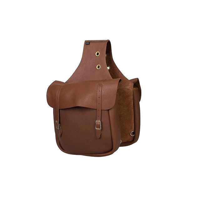 Pack what you need on your stylish steed with the Weaver Leather Chap Leather Horse Saddle Bag. This extra-wide saddle bag is crafted from distressed top grain leather and durable brass-plated hardware. Enjoy a classic look or go bold with scalloped flaps, accent spots and beautiful floral stainless steel buckles. The wide design offers extra storage space with inside stitching for a smooth, quality look.