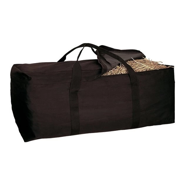 Take your show on the road with the Weaver Leather Large Horse Hay Bale Bag. This hay bag is designed to accommodate west-coast-sized bales and measures 50 inches long by 24 inches wide and 17 inches tall. It features webbing handles for convenient transport just about anywhere. This hay bale bag is equipped with a three-sided zipper for easy loading and ventilation holes for air circulation. It is crafted with a classic black color that will look great no matter where you use it.